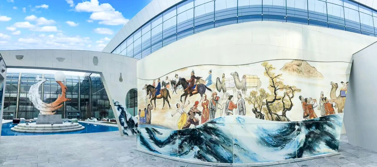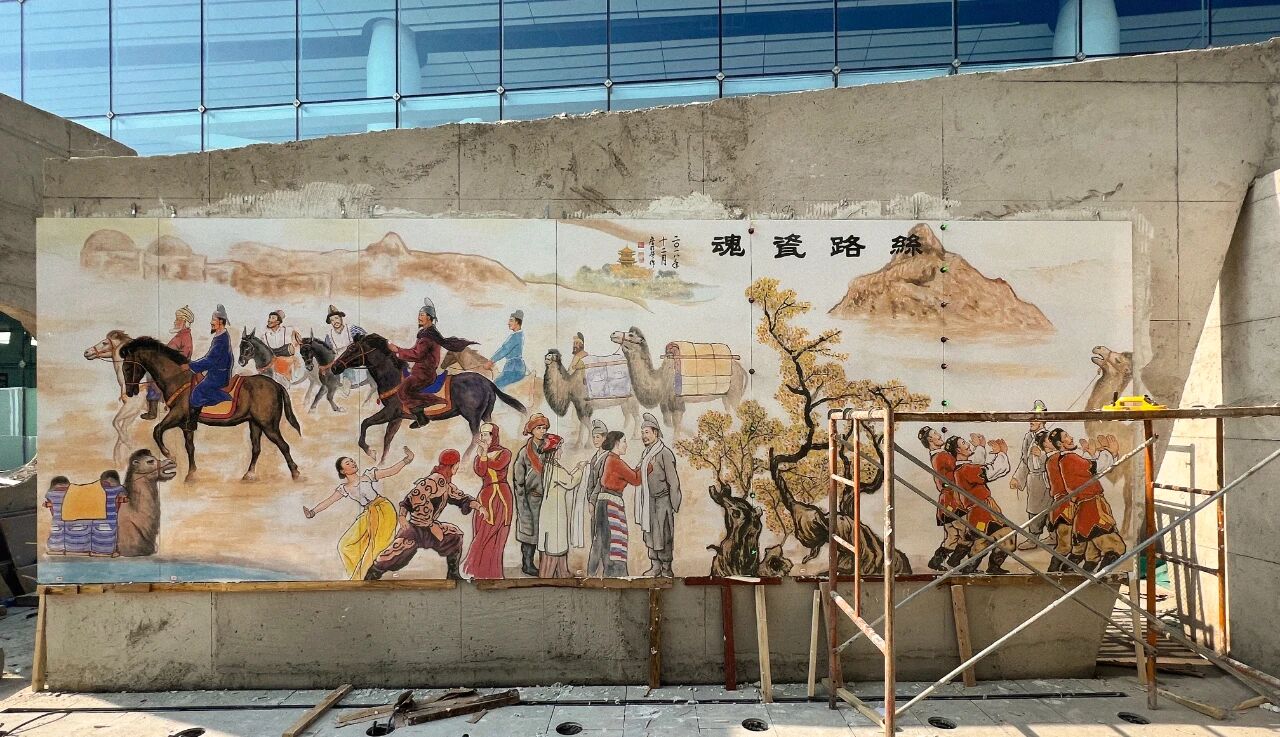 陶藝文化墻墻體上鑲嵌著精致的圓形、方形與異形瓷板。這些瓷板上,大師親自手繪的畫(huà)面生動(dòng)展現(xiàn)了我國(guó)陶瓷從誕生到發(fā)展的輝煌歷程,以及各歷史時(shí)期的獨(dú)特文化風(fēng)貌。它們還描繪了陶瓷沿著絲綢之路傳播,對(duì)世界文明產(chǎn)生的深遠(yuǎn)影響和卓越貢獻(xiàn)。