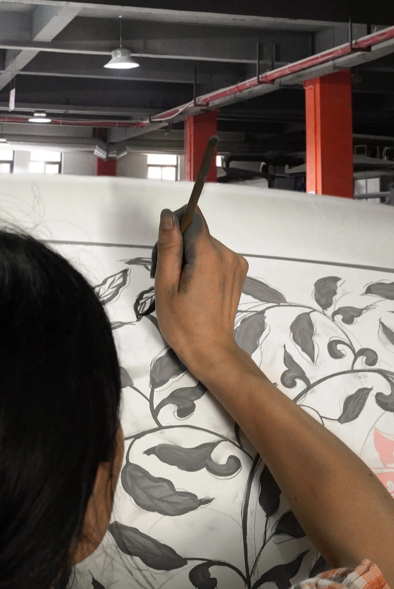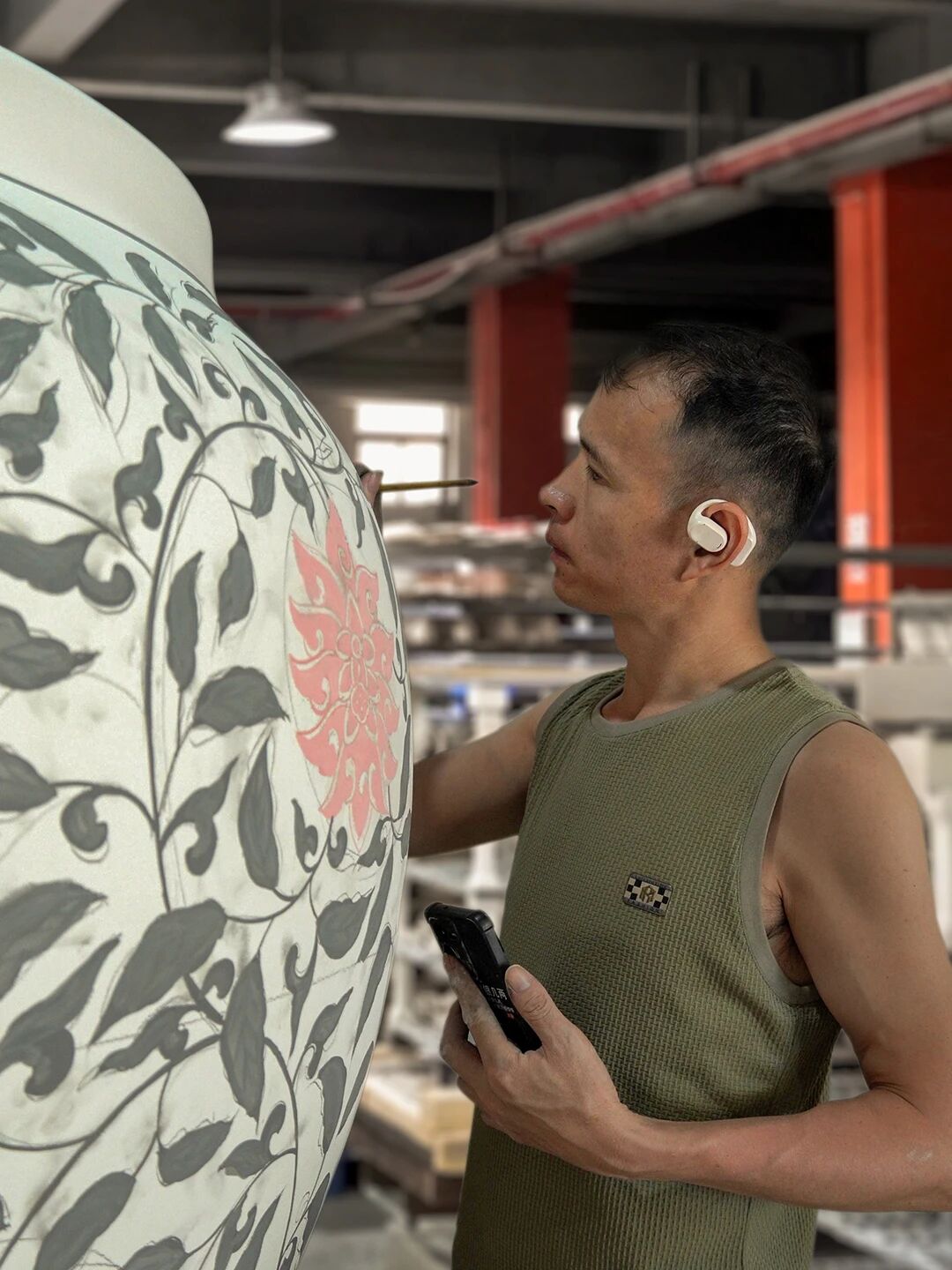 七星彩壇直徑1.1米、高1米,壇底盤直徑1.3米,這樣的尺寸無(wú)疑給燒制過(guò)程帶來(lái)了極高的挑戰(zhàn)。而在其表面,青花、五彩等七大傳統(tǒng)瓷藝畫(huà)面的創(chuàng)作難度同樣非凡。然而,我們的匠人們憑借不懈的努力與持續(xù)的突破,最終將其完美呈現(xiàn)。