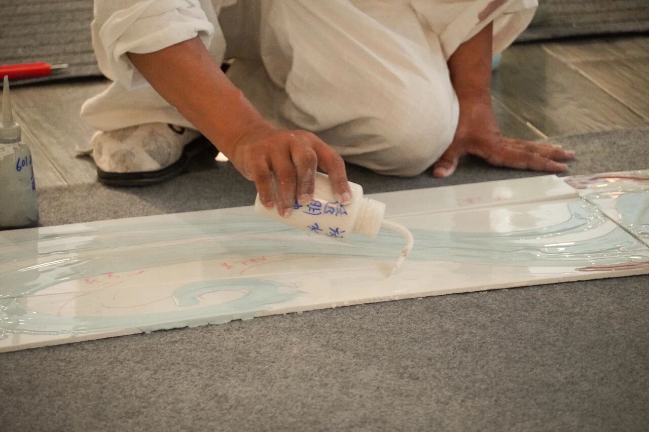 陶藝風(fēng)帆—巧妙地將瓷板切割并組裝成模擬海上揚(yáng)帆遠(yuǎn)航的帆船形態(tài),其上的畫(huà)面細(xì)膩地還原了海浪。創(chuàng)作過(guò)程中,畫(huà)師首先精心勾勒出帆船的輪廓與海浪的動(dòng)勢(shì),隨后,一塊塊填上色彩,每一筆都蘊(yùn)含著極致的細(xì)膩與匠心。