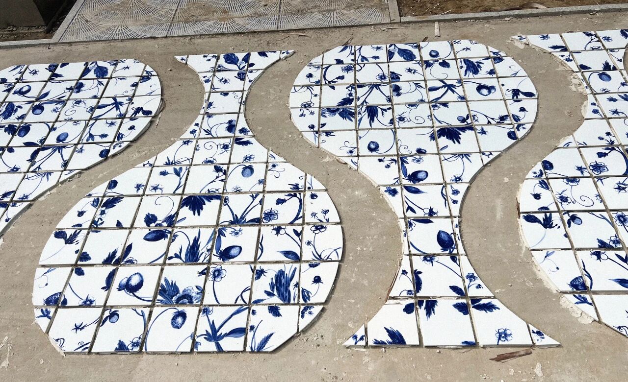 仿水面硬地鋪裝由數(shù)百塊精心挑選的水波紋瓷磚拼貼而成,瓷磚的本體藍(lán)色經(jīng)過(guò)數(shù)次調(diào)整,以達(dá)到最為逼真的視覺(jué)效果。瓷磚表面刻畫(huà)著不規(guī)則的波紋線條,宛如自然界的流水痕跡,精心設(shè)計(jì)的細(xì)節(jié)旨在使地面鋪設(shè)仿佛真正的水面一般生動(dòng)。當(dāng)清水輕輕灑落其上,更是與水波蕩漾的景象相得益彰。