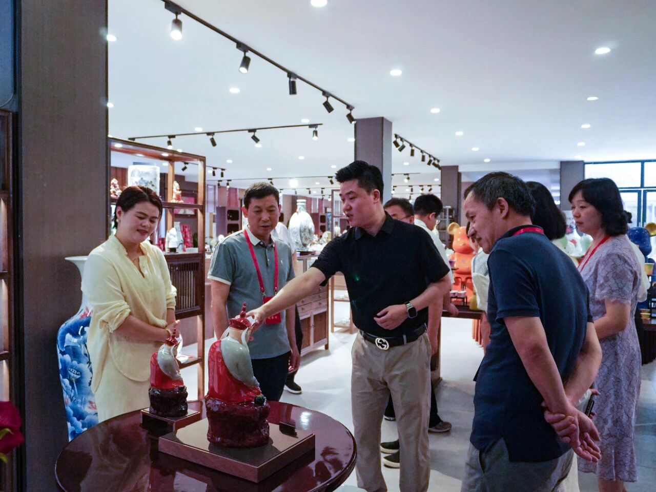 參觀期間,總經(jīng)理重點(diǎn)介紹了企業(yè)自主設(shè)計(jì)的"復(fù)刻無語佛"系列產(chǎn)品。作品精準(zhǔn)還原傳統(tǒng)佛像神韻,工藝精湛,市場(chǎng)反響熱烈。占劍副主任仔細(xì)觀摩后,高度贊賞企業(yè)將傳統(tǒng)技藝與現(xiàn)代設(shè)計(jì)相結(jié)合的創(chuàng)新實(shí)踐,充分肯定了企業(yè)在傳承和弘揚(yáng)陶瓷文化方面所做的努力。