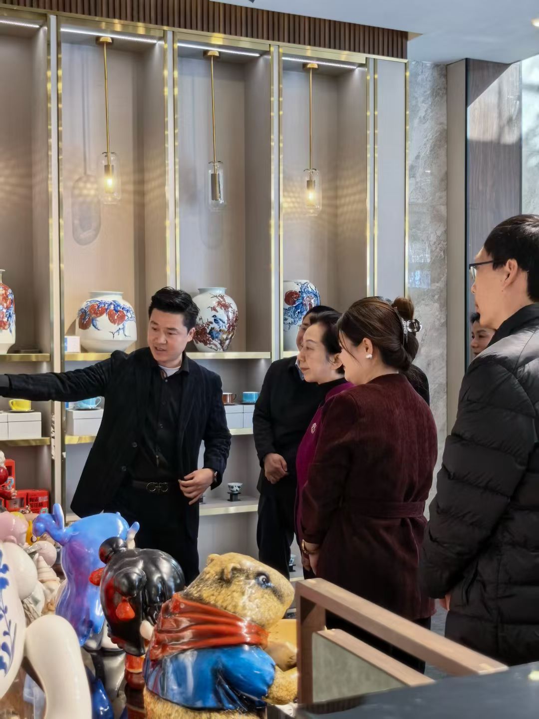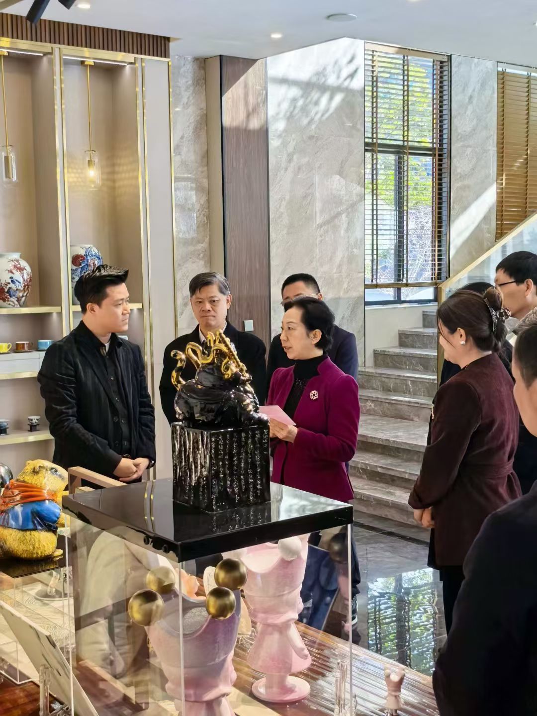 作為此次調(diào)研的重要一站,胡雪梅書記對辰天陶瓷在創(chuàng)意設(shè)計領(lǐng)域的實踐給予充分肯定。她仔細(xì)觀看企業(yè)潮玩IP系列、高奢美學(xué)陶瓷與文創(chuàng)產(chǎn)品,聽取企業(yè)在設(shè)計研發(fā)、產(chǎn)業(yè)合作與市場拓展方面的工作匯報。